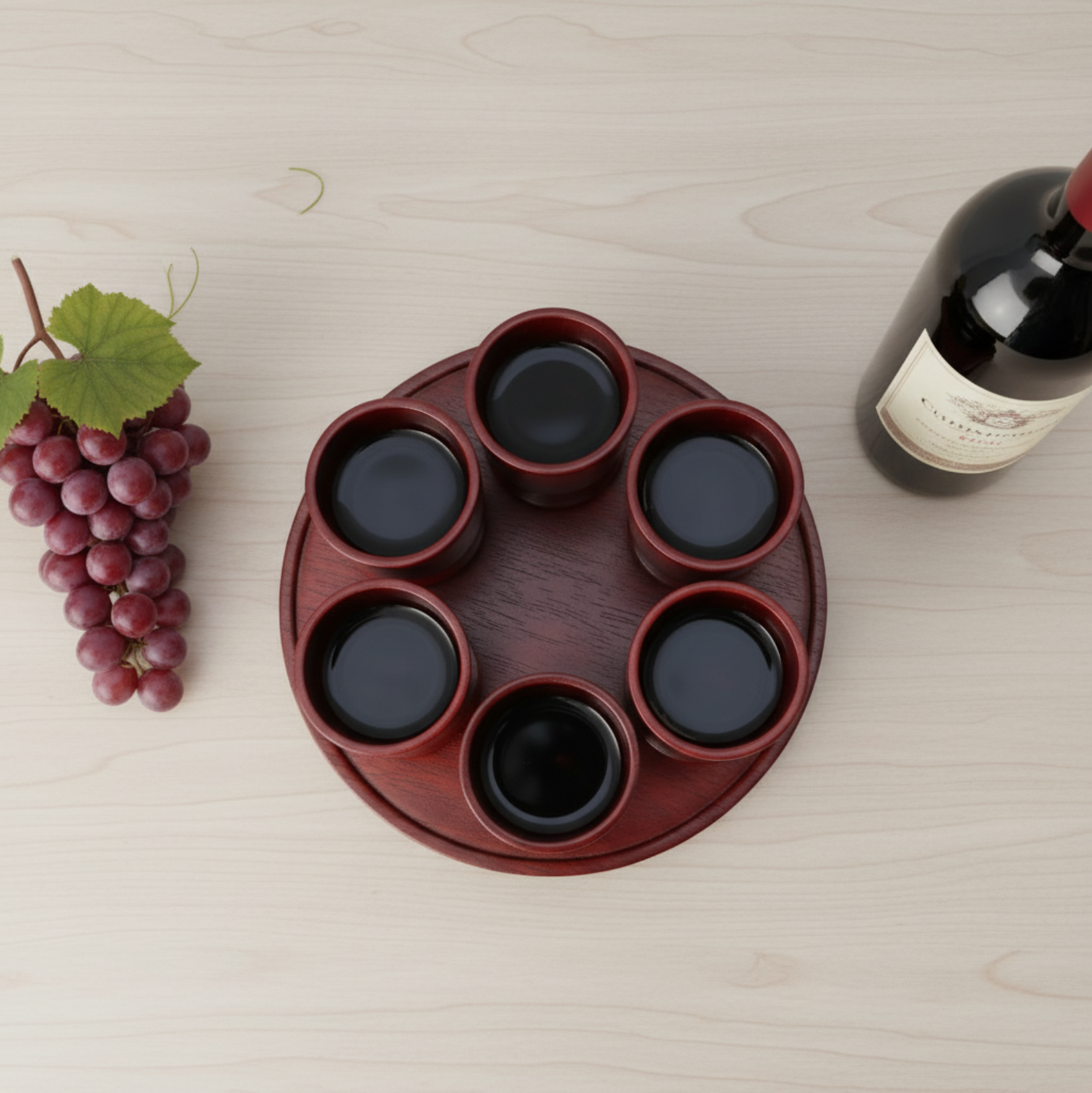 Artisan Red Wooden Wine Goblet Set with Tray – Handcrafted Elegance from El Salvador