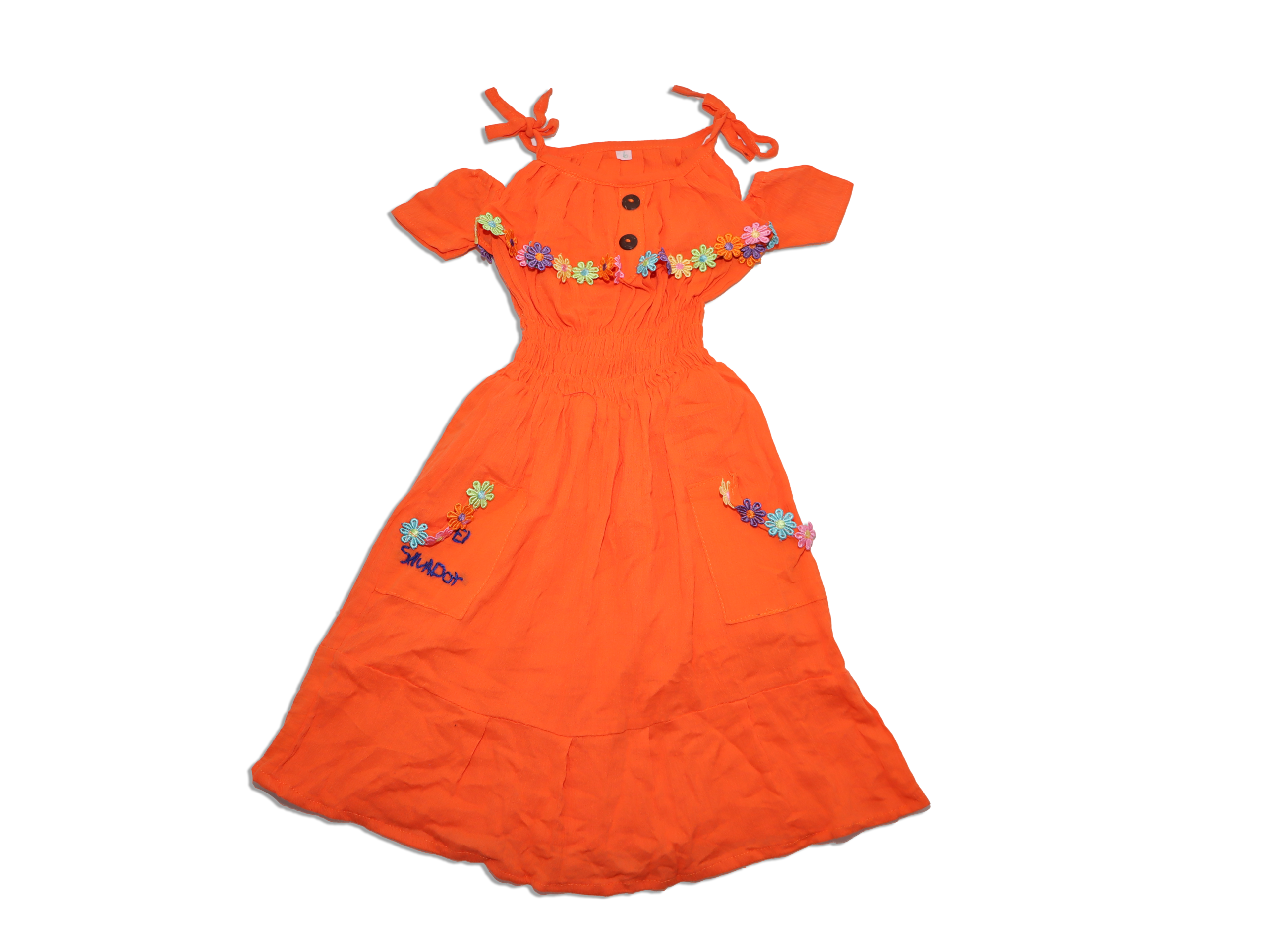Citrus Orange Women’s Dress Hand-Embroidered Artisanal Floral Design with Calligraphic ‘El Salvador’