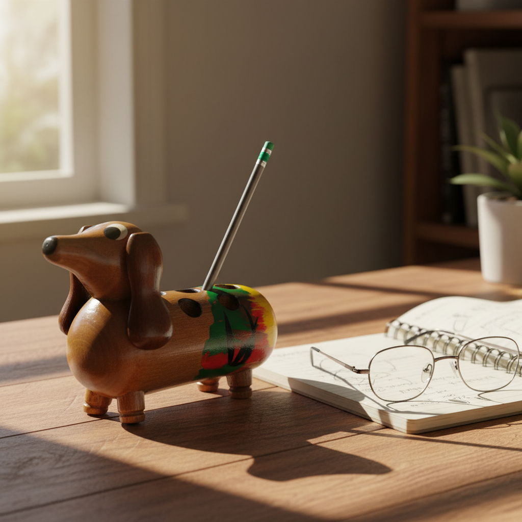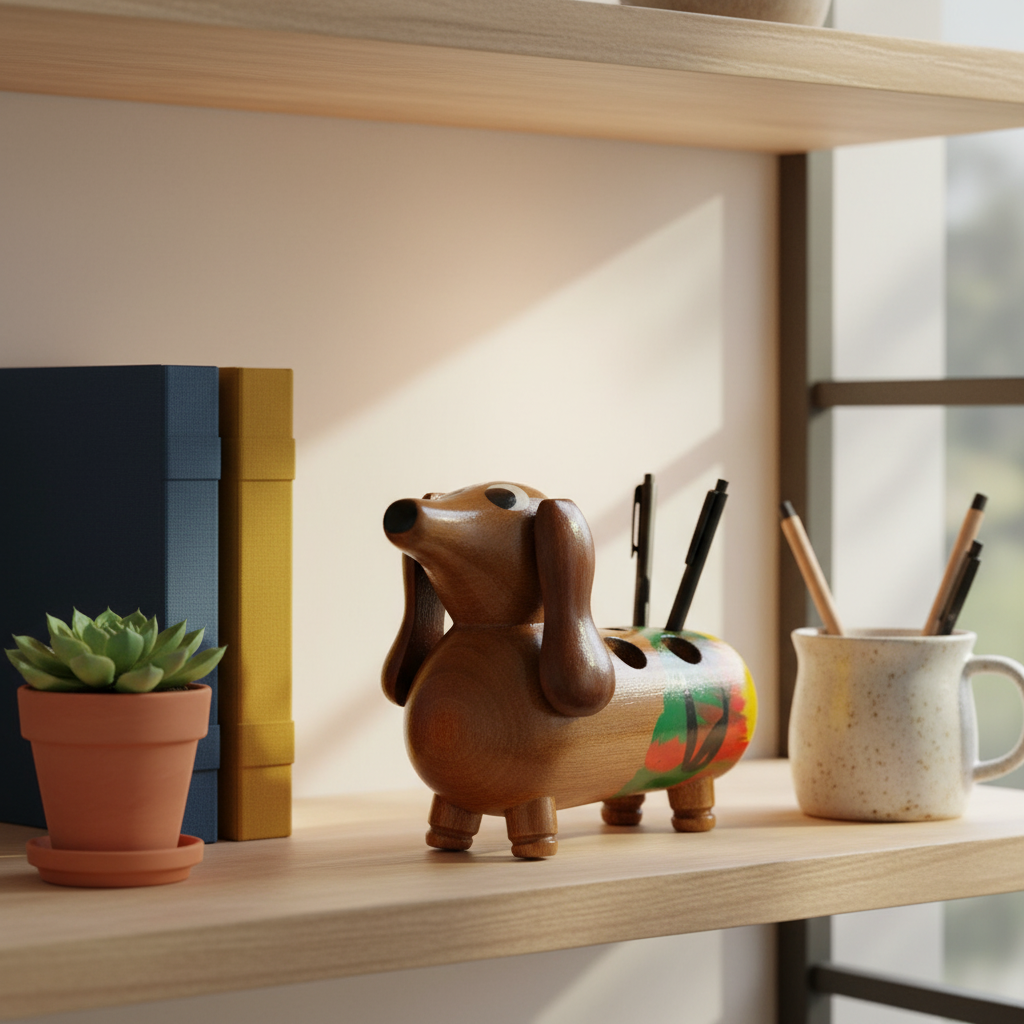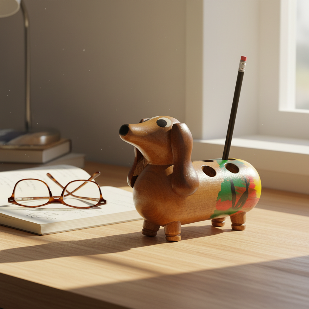 - Playful Dachshund Design: An endearing dog figure, intricately carved from solid wood, adding a whimsical yet functional touch to your desk.