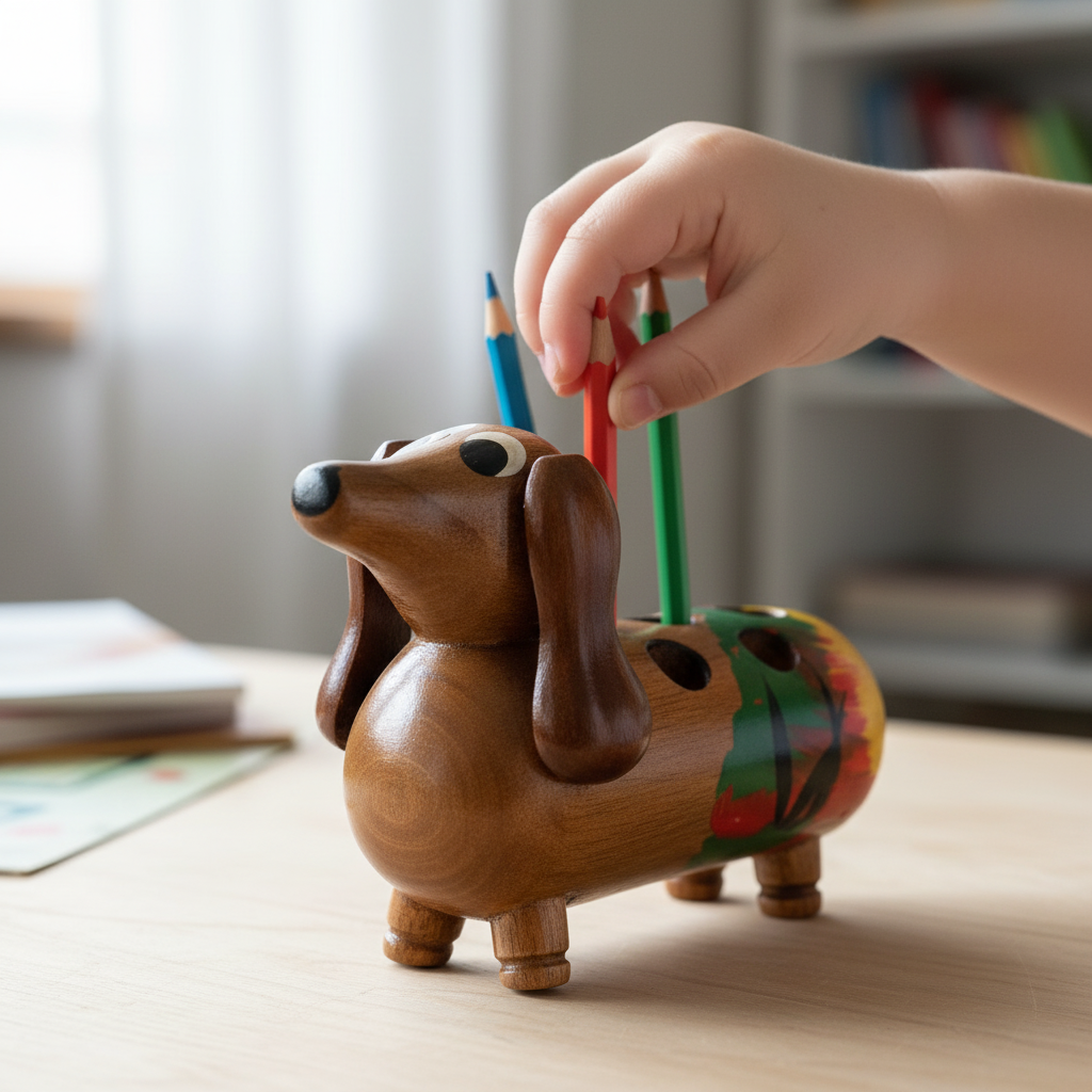 Handcrafted Wooden Dachshund Pencil Holder (7 Slots)