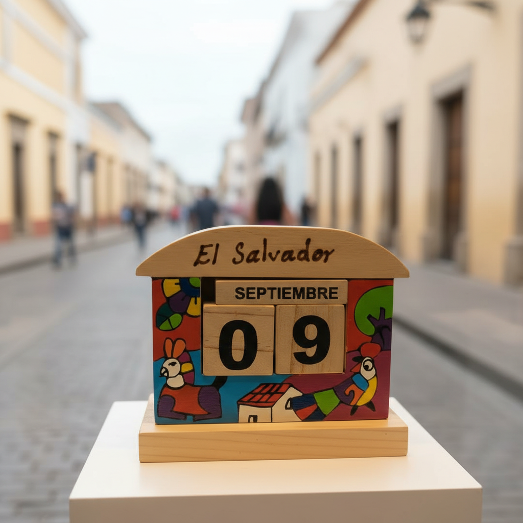 Handcrafted Wooden Perpetual Calendar – “El Salvador” Motif