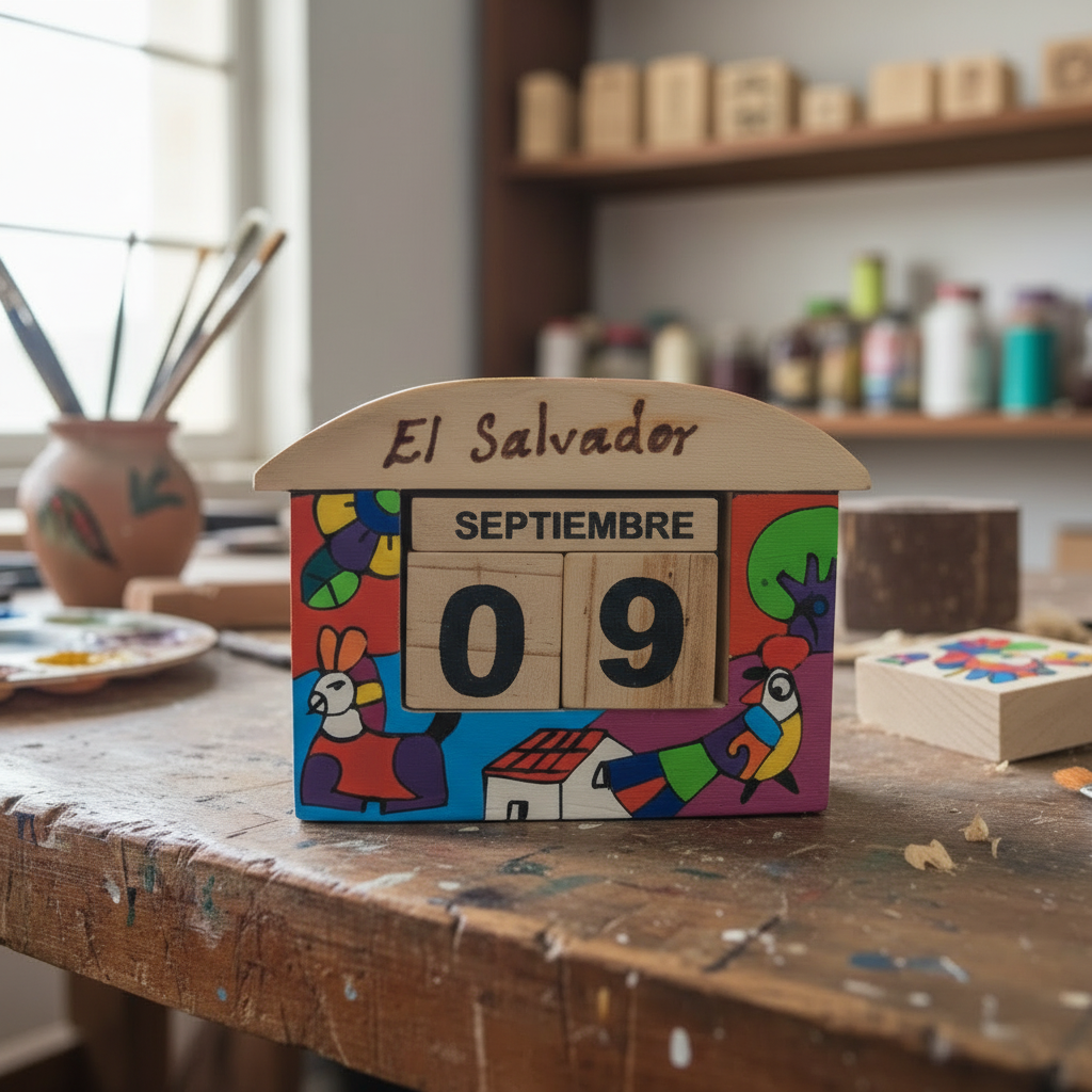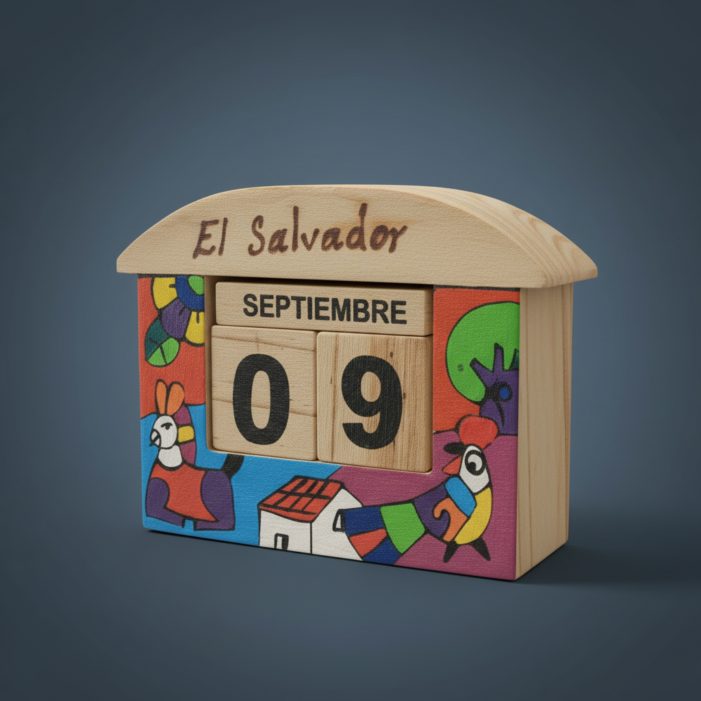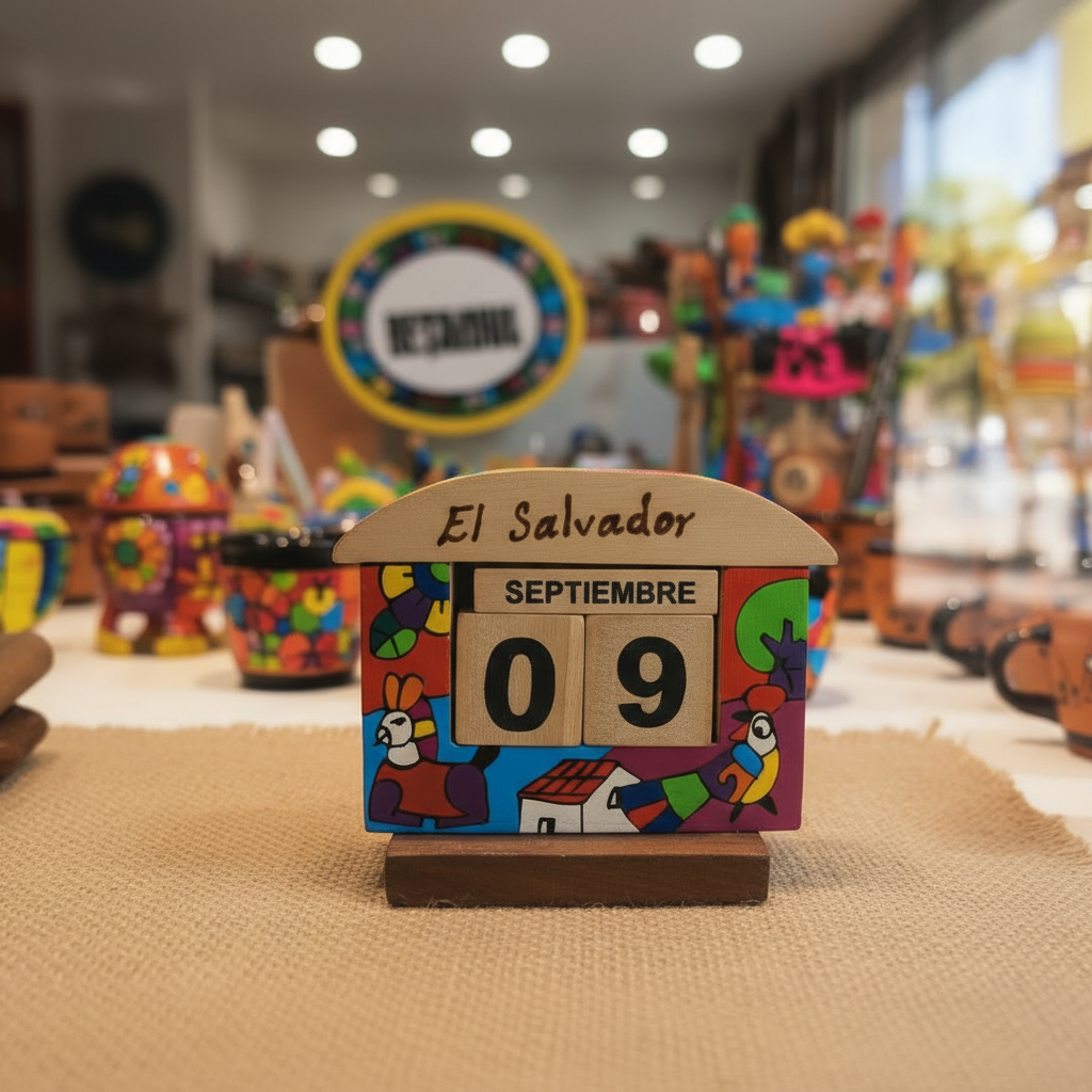 Keep track of the days with a charming and patriotic touch using our Handcrafted Wooden Perpetual Calendar. Meticulously carved from wood, this compact calendar features a classic design with smoothly rotating blocks for day and month, ensuring you never need a new calendar. Adorned with a vibrant hand-painted scene depicting elements of El Salvador’s landscape and culture, such as houses, birds, and lush trees, along with the inscription “El Salvador” and “Septiembre 09” (as a sample date), it combines functionality with miniature folk art. Perfect for a desk, shelf, or kitchen counter, this calendar is a functional and decorative piece that celebrates Salvadoran heritage. Its compact size makes it a delightful everyday accent or a thoughtful souvenir.