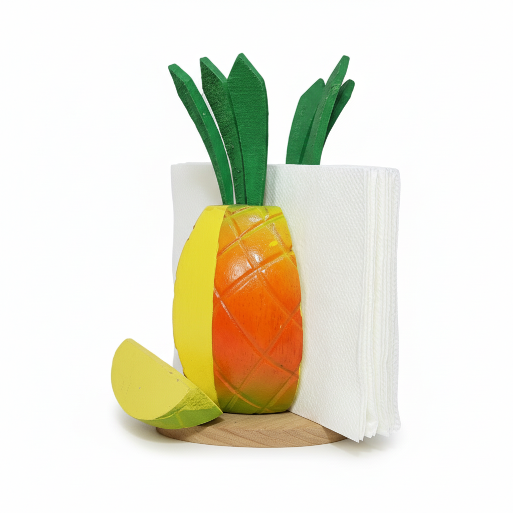 Handcrafted Wooden Pineapple Napkin Holder – Tropical Folk Art Design