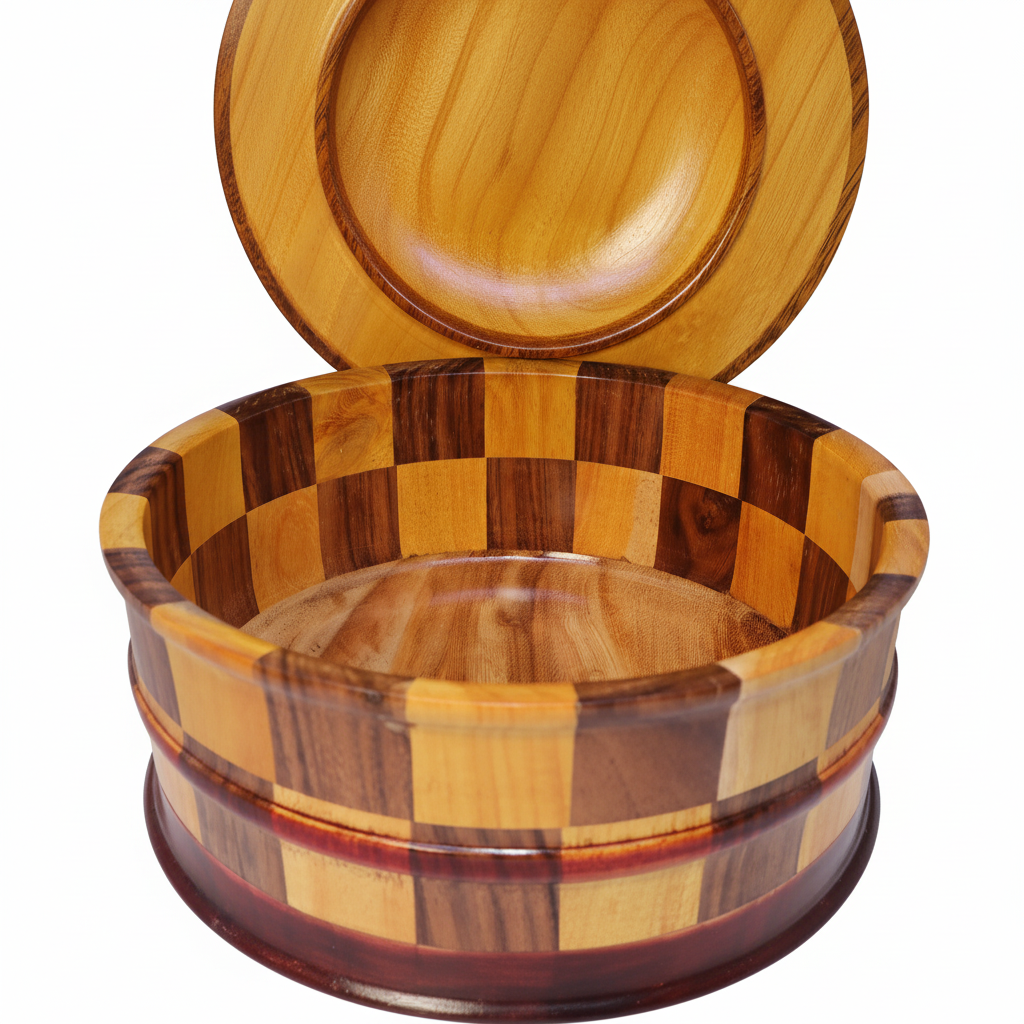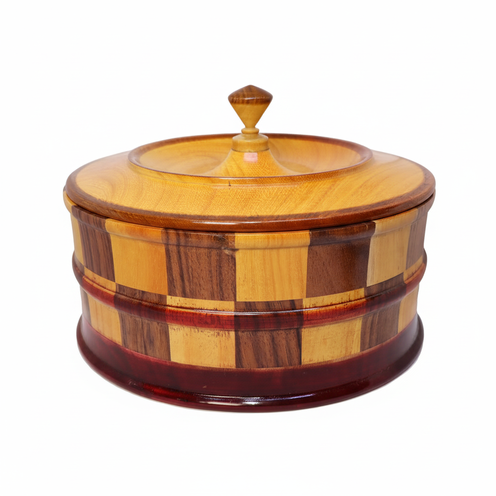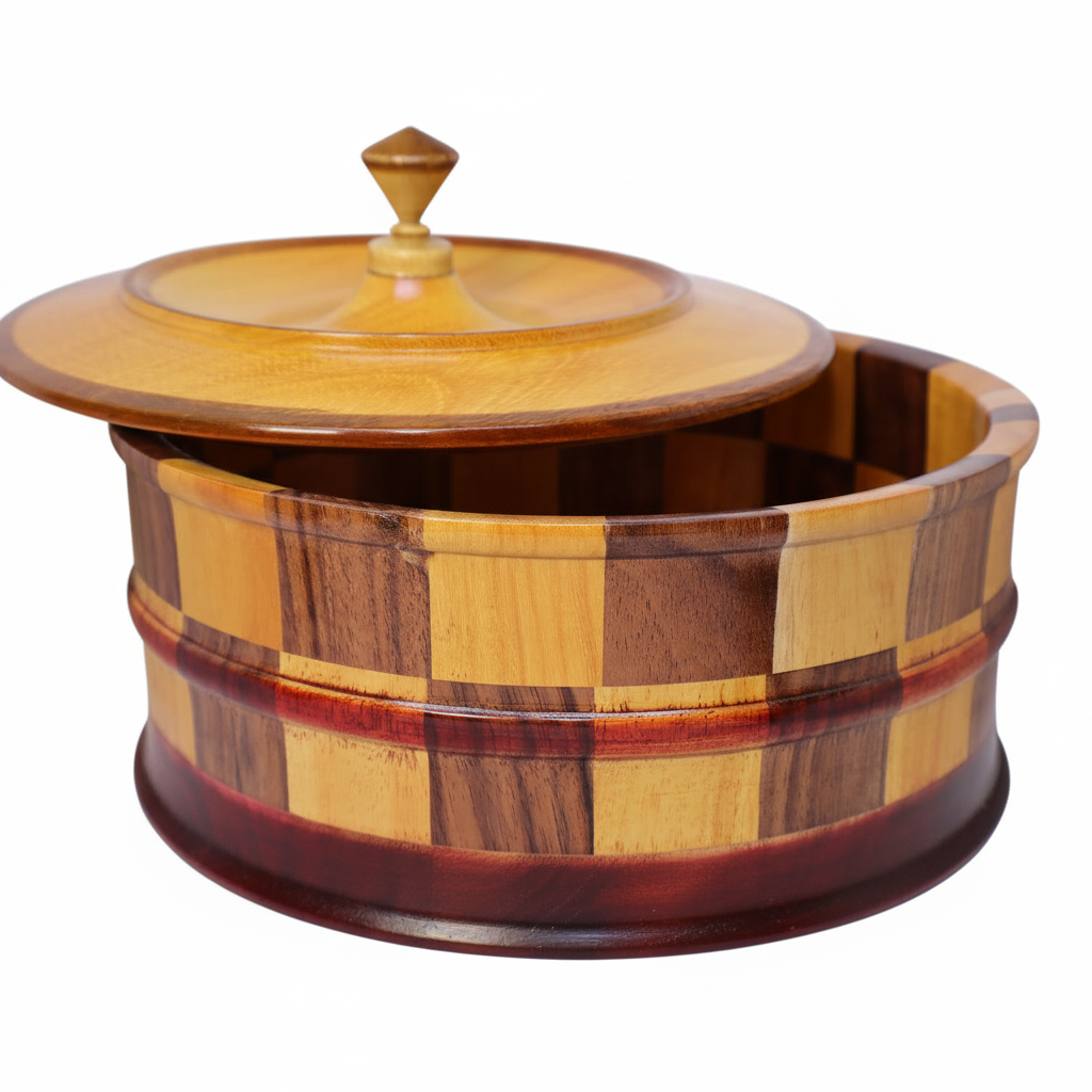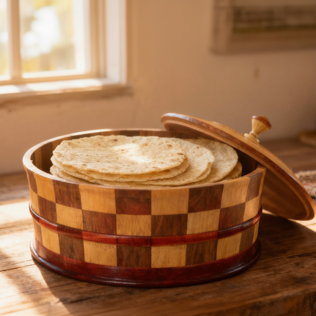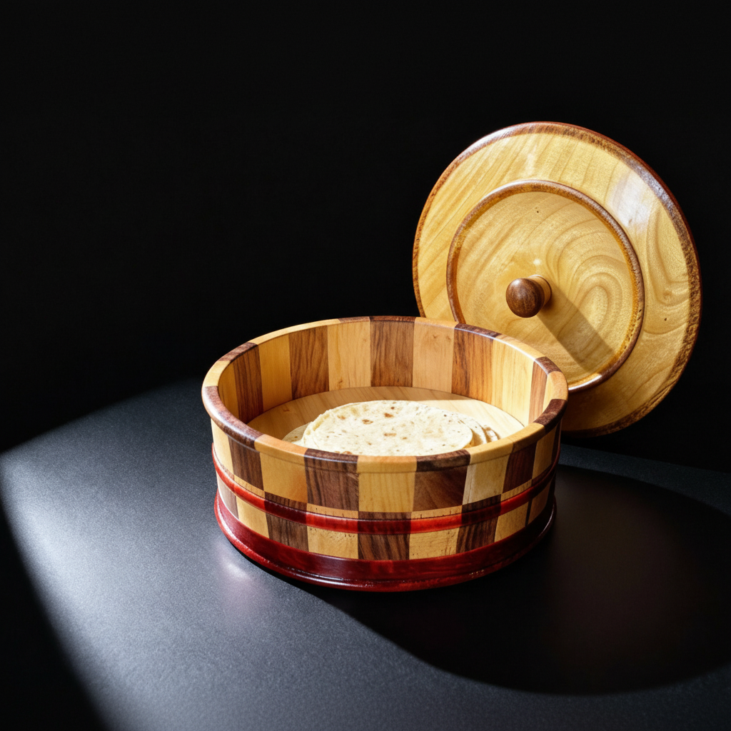 Handmade Wooden Tortilla Warmer – Artisan Crafted Multi-Tone Wood Design