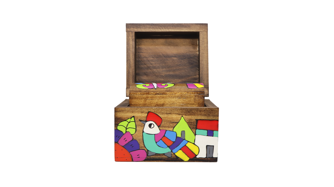 Discover the charm of craftsmanship with our Set of Small Colorful Artisan Wooden Treasure Boxes. This duo of boxes, crafted from wood and hand-painted with cheerful geometric patterns, popular figures, or abstract motifs, are an explosion of color and authenticity. Each box is a unique piece, with its own vibrant design reflecting the rich tradition of Salvadoran folk art. Perfect for storing jewelry, secrets, trinkets, or any small cherished item, these boxes are both functional and decorative elements, adding a bohemian and playful touch to any corner of your home.