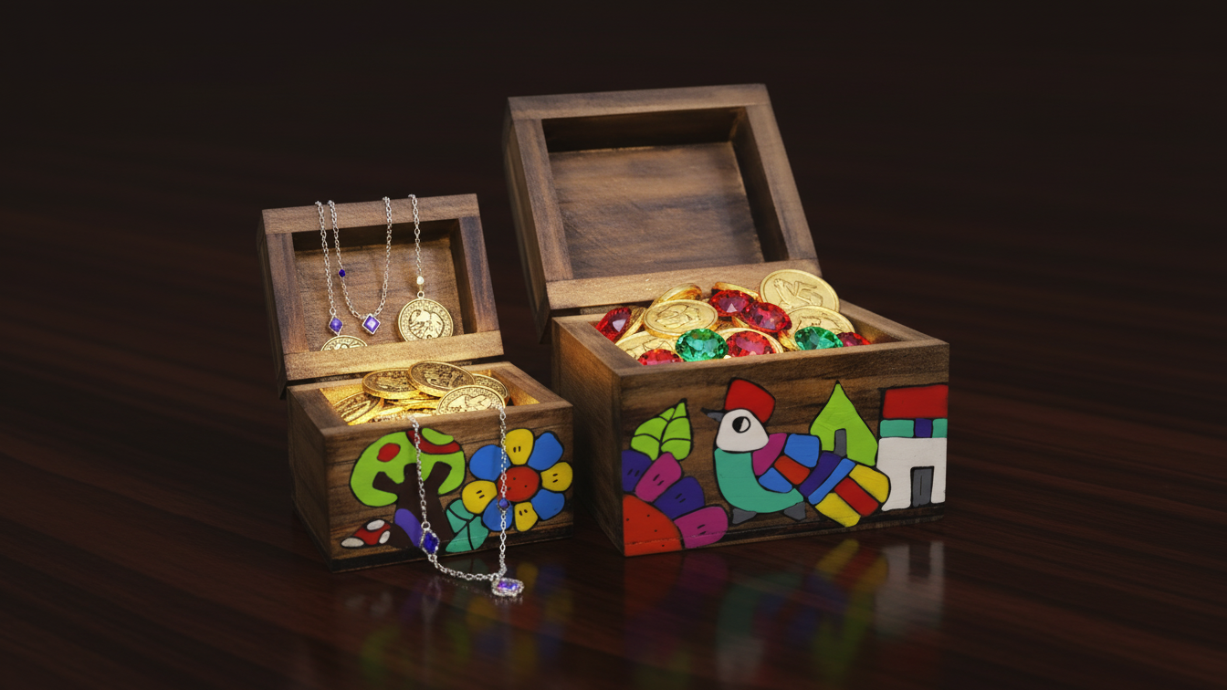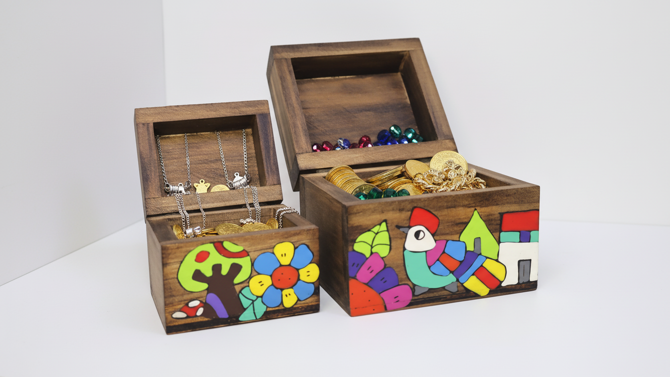 Small Colorful Artisan Wooden Treasure Boxes (Set of 2)