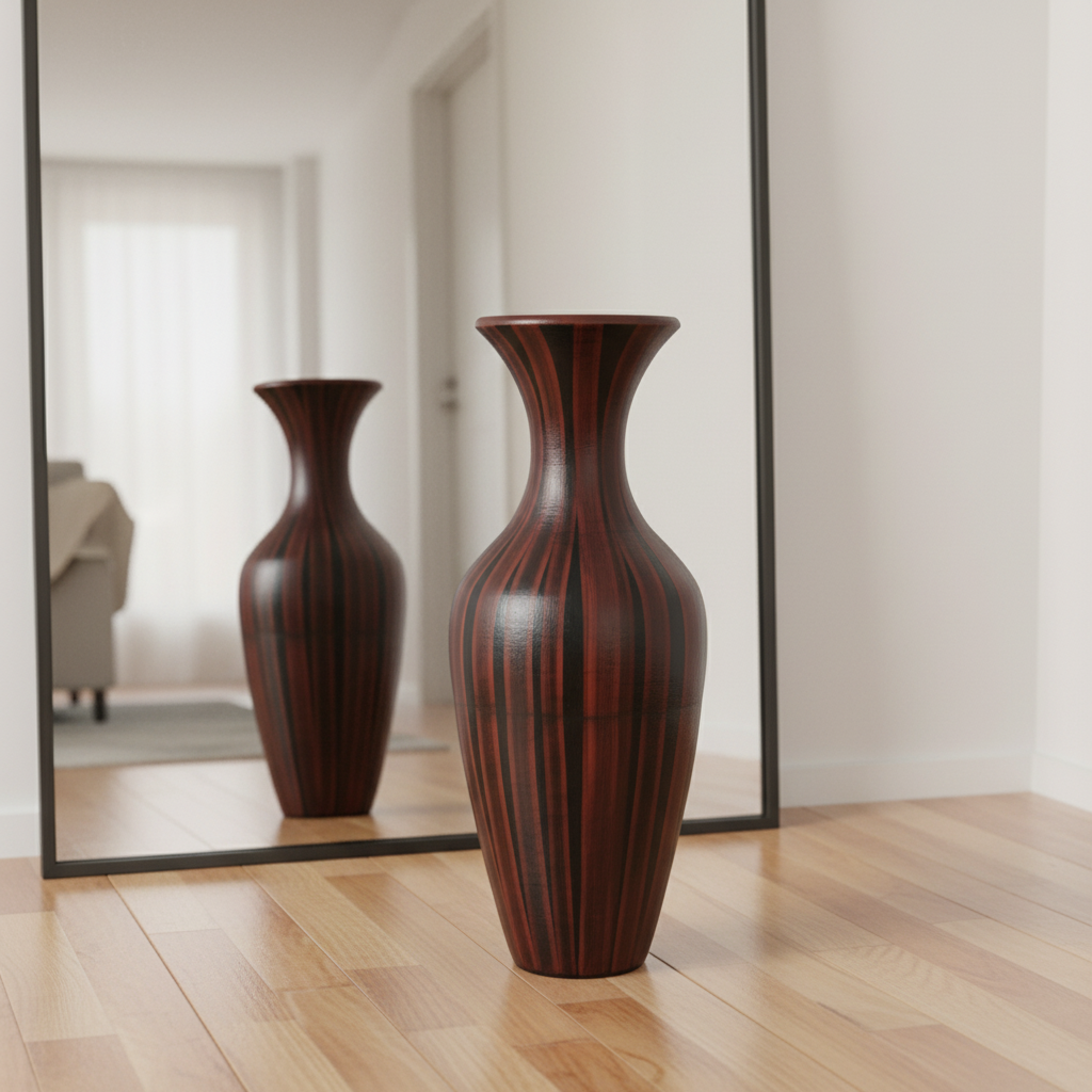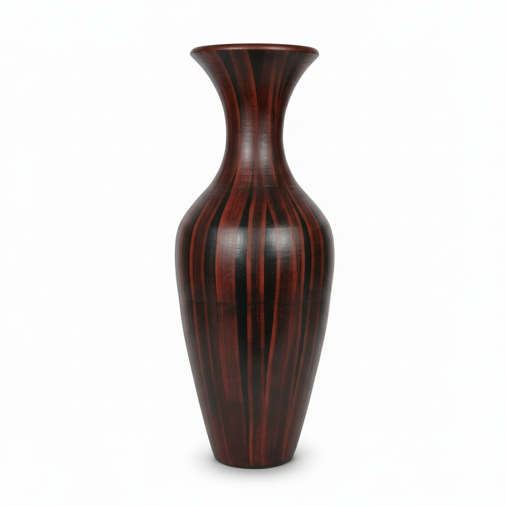 Make a striking statement in your living space with our Tall Hand-Painted Red Clay Floor Vase, a testament to rustic elegance. Standing at an impressive 75 cm (approximately 29.5 inches) and weighing 15.75 lbs (7.1 kg), this elegant vase is meticulously sculpted from traditional “barro rojo” (red clay) and artfully hand-painted to mimic the rich, textured grain of dark wood. Its slender, graceful silhouette and deep, earthy tones create a sophisticated focal point for any room, embodying the timeless beauty of natural materials.